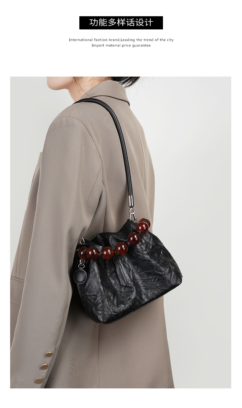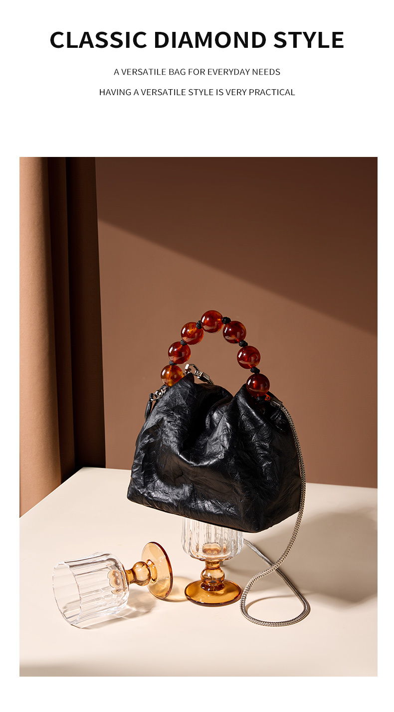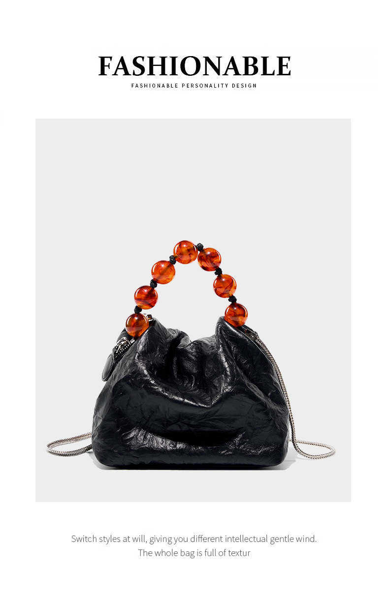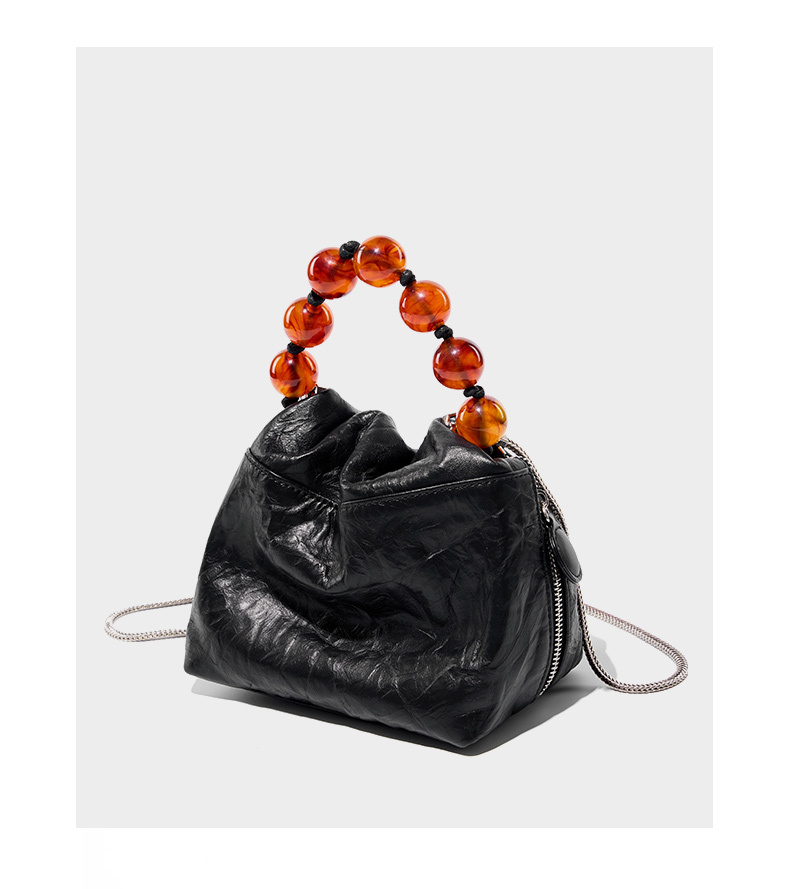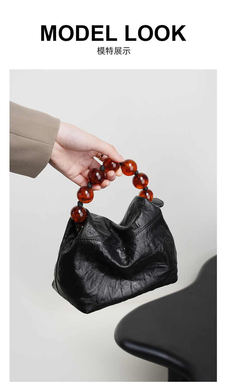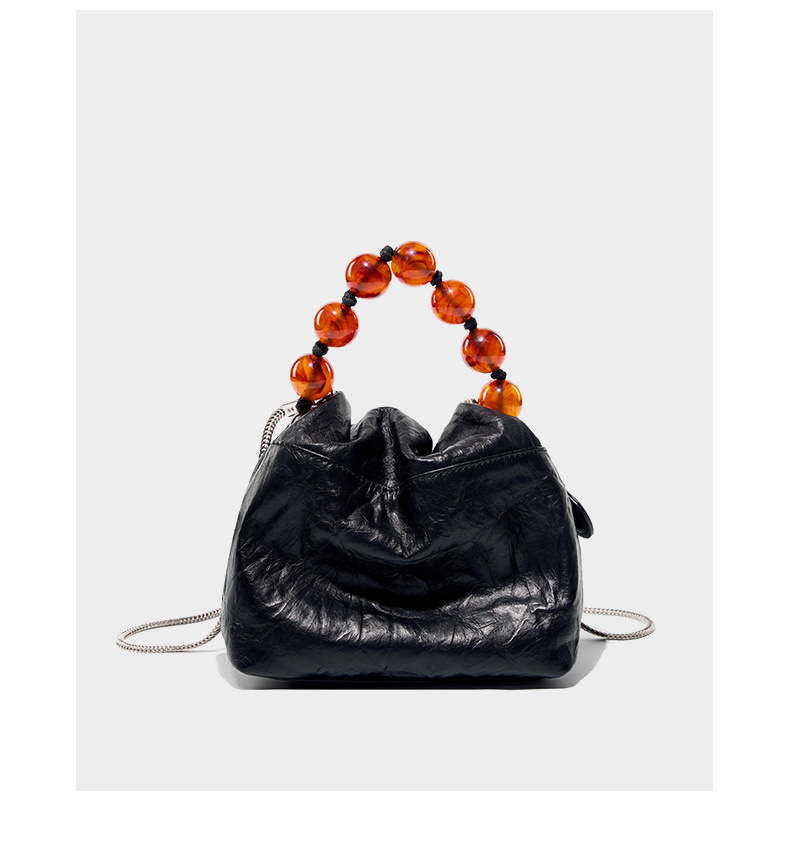 - 商品名稱: 2622--新中式珠子包個性小眾頭層牛皮包包女手抓紋飯盒包串珠手提斜挎包