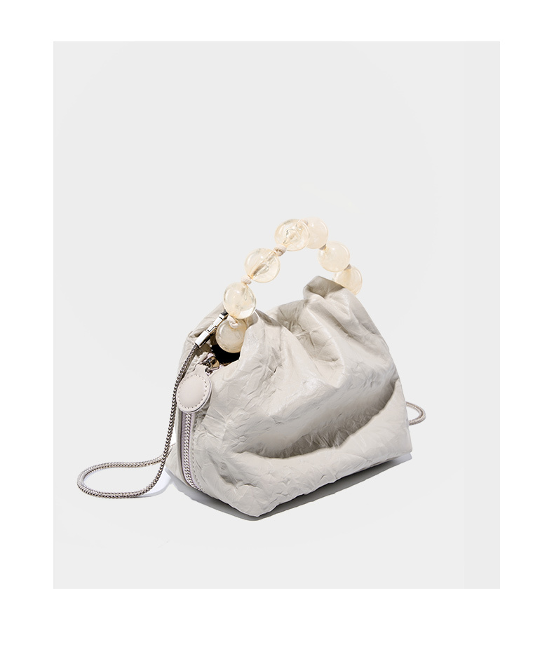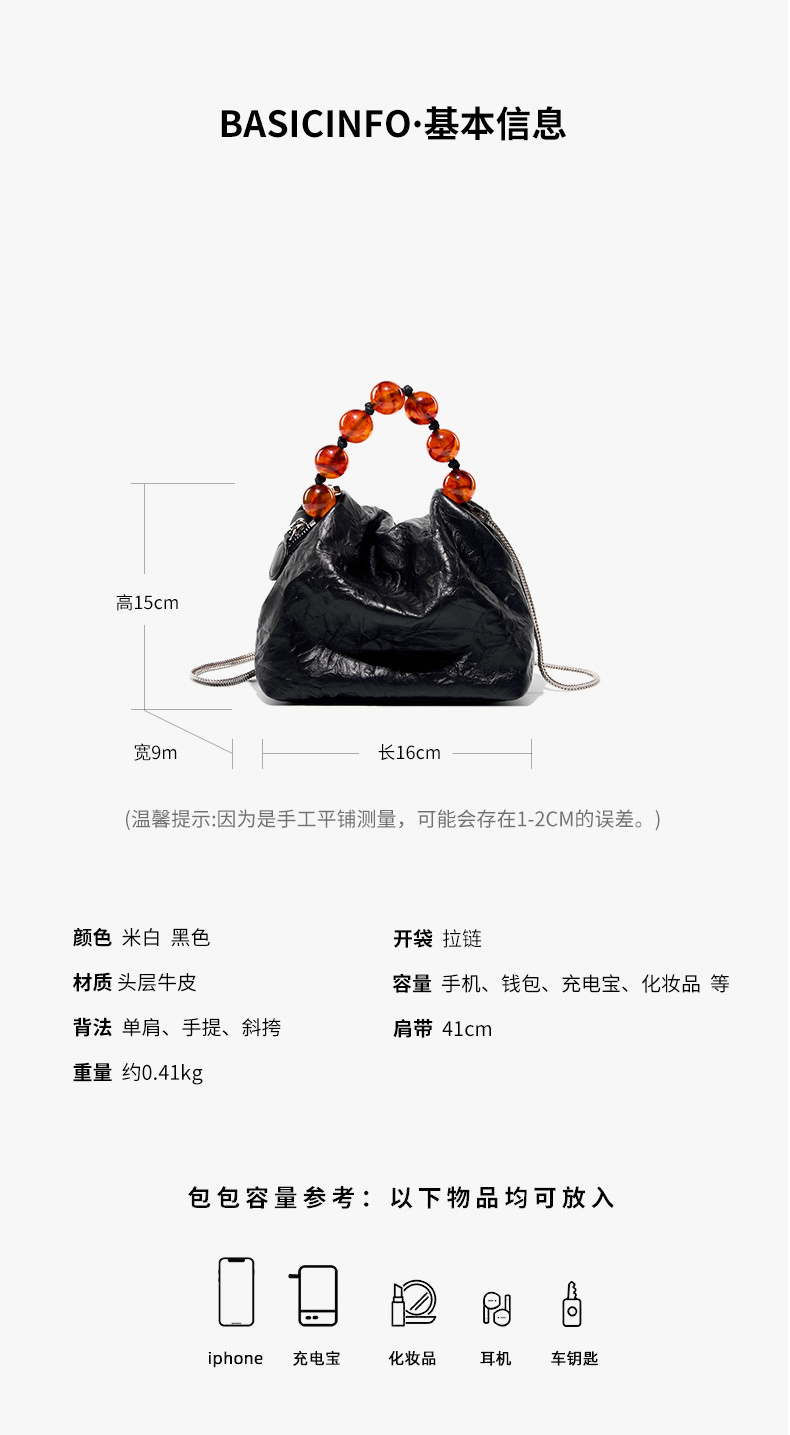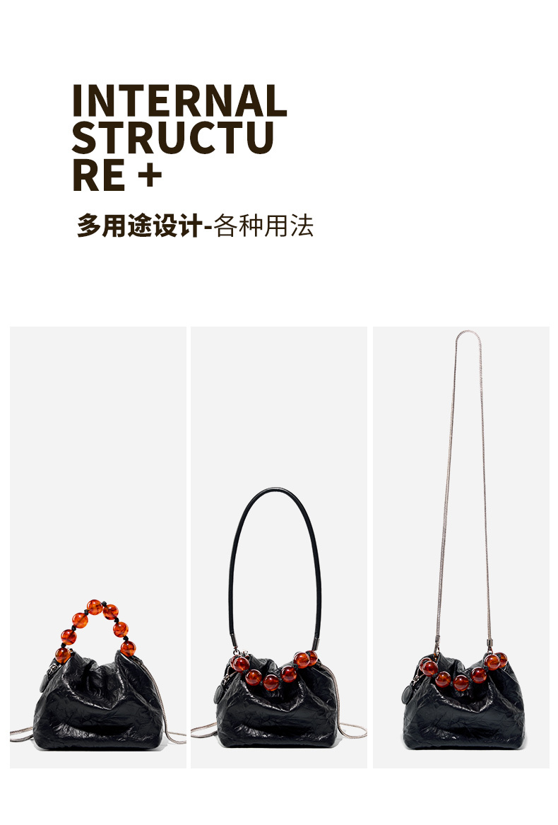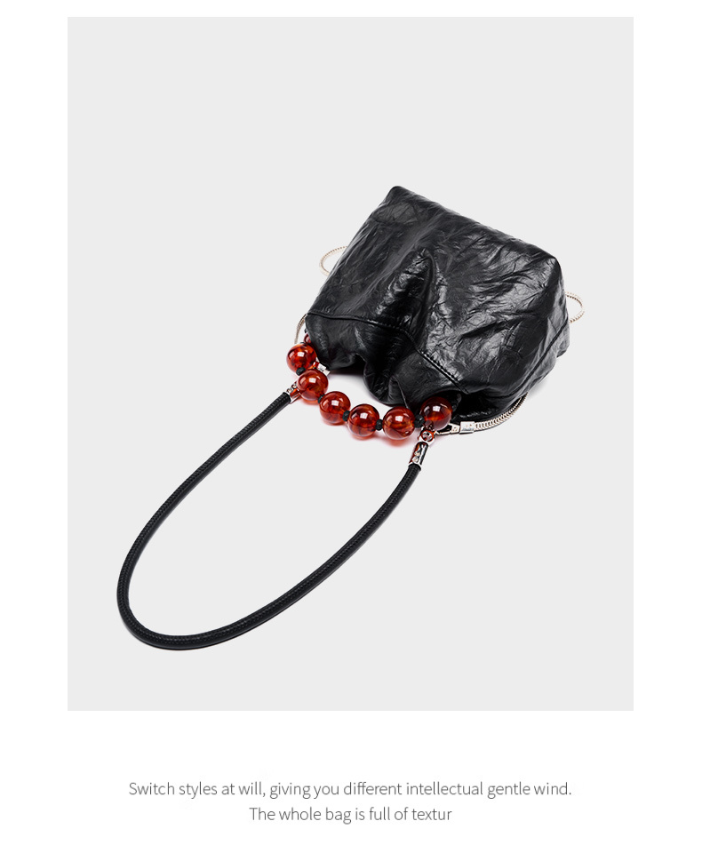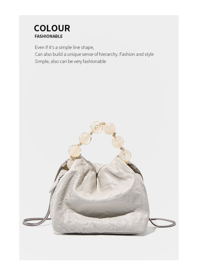 - 商品名稱: 2622--新中式珠子包個性小眾頭層牛皮包包女手抓紋飯盒包串珠手提斜挎包