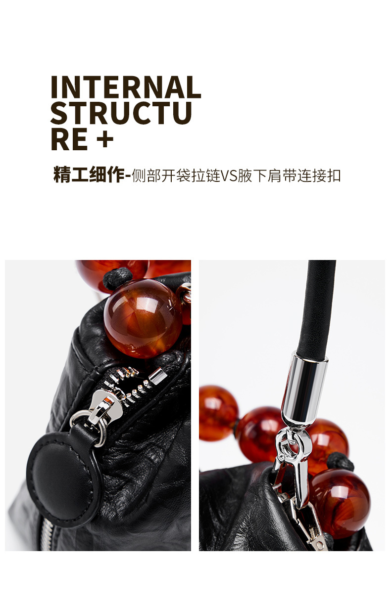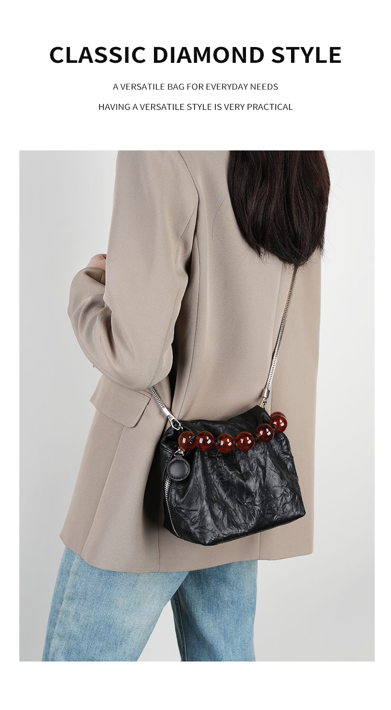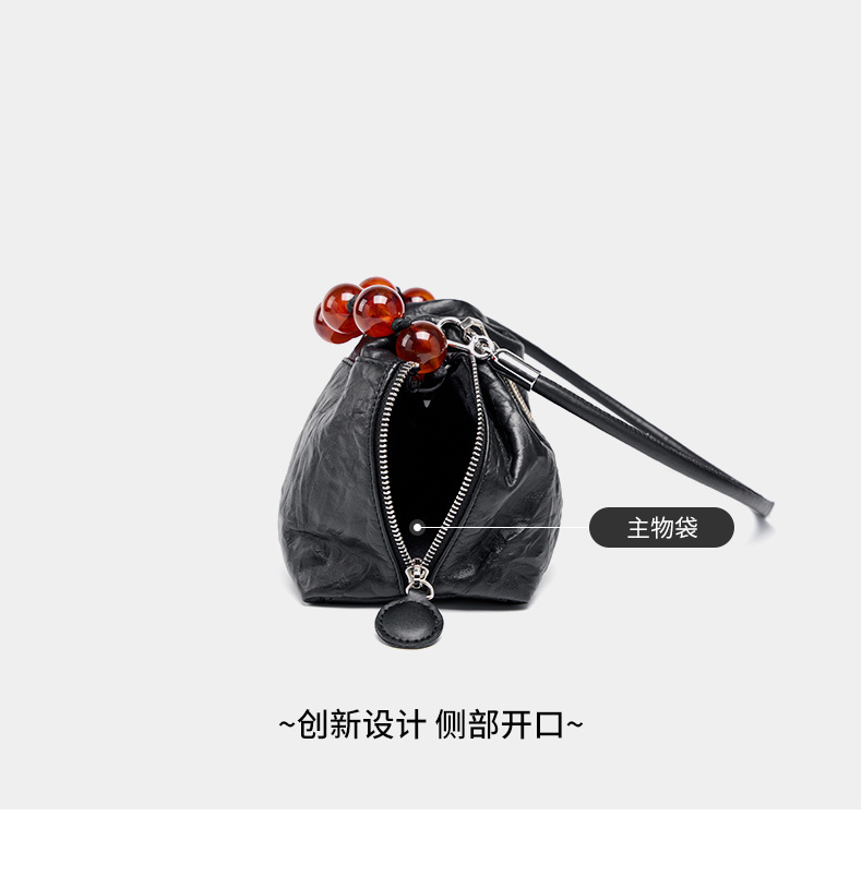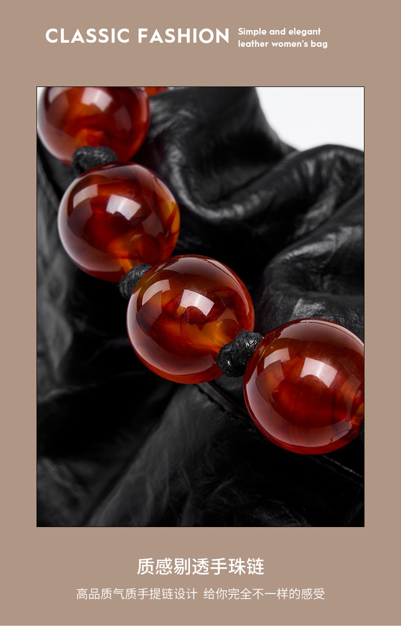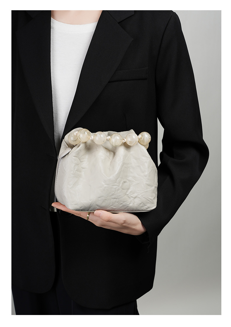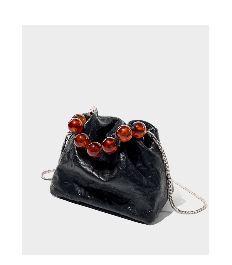 - 商品名稱: 2622--新中式珠子包個性小眾頭層牛皮包包女手抓紋飯盒包串珠手提斜挎包