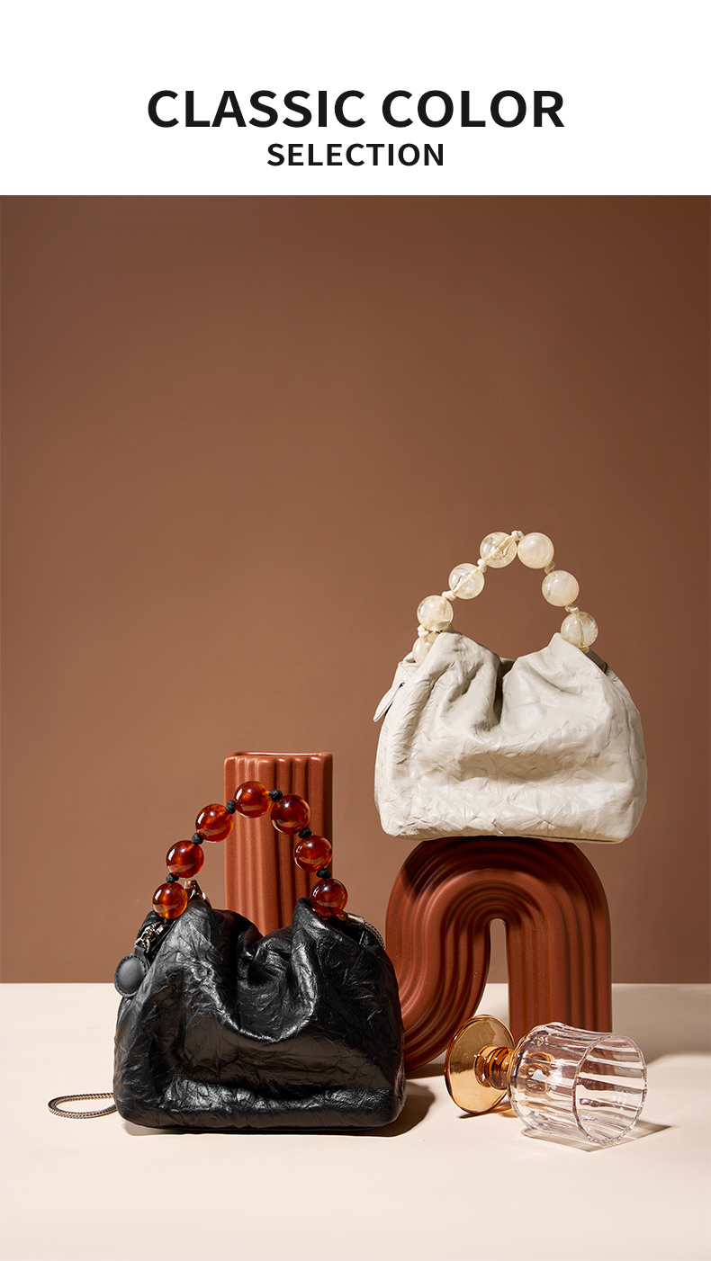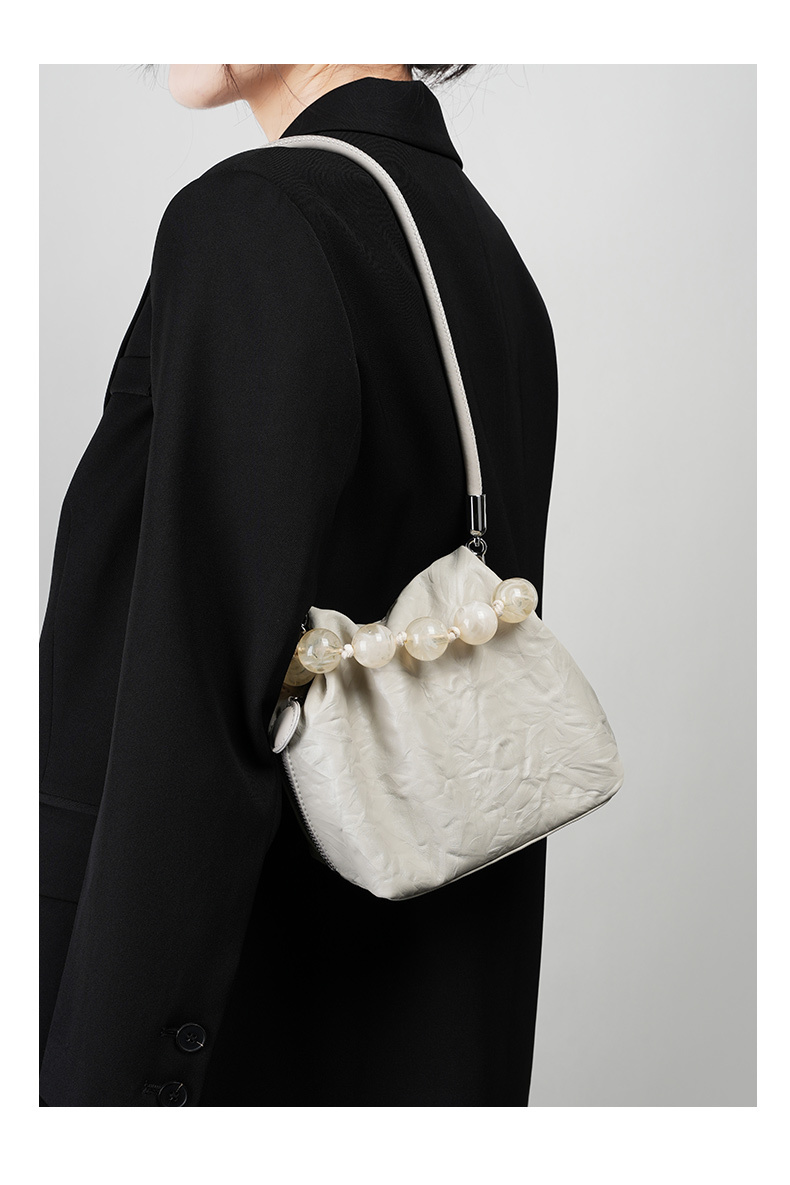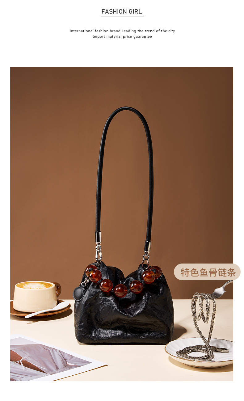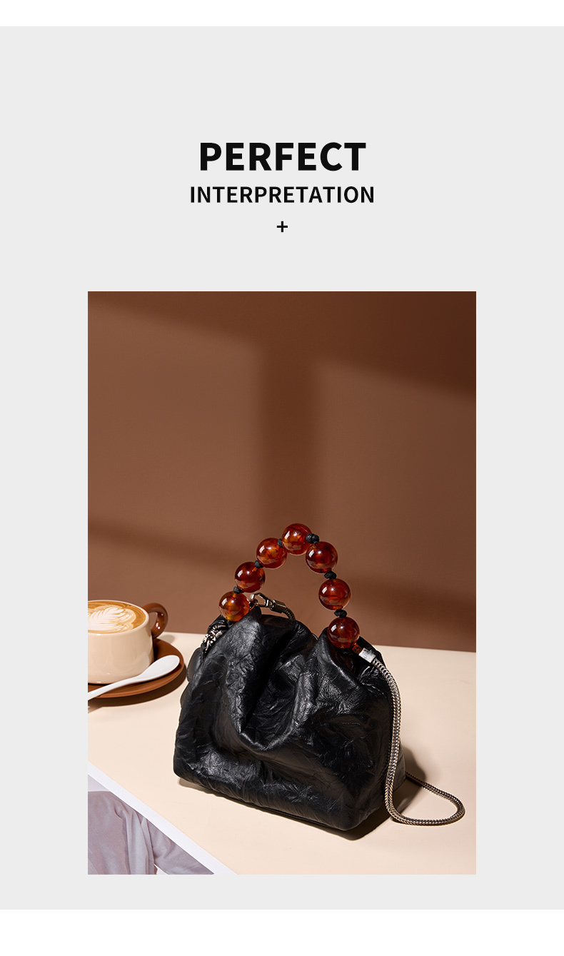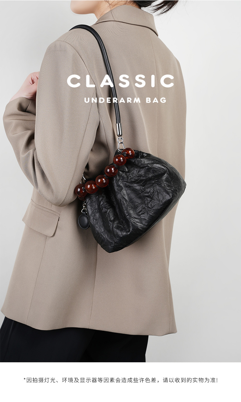 - 商品名稱: 2622--新中式珠子包個性小眾頭層牛皮包包女手抓紋飯盒包串珠手提斜挎包