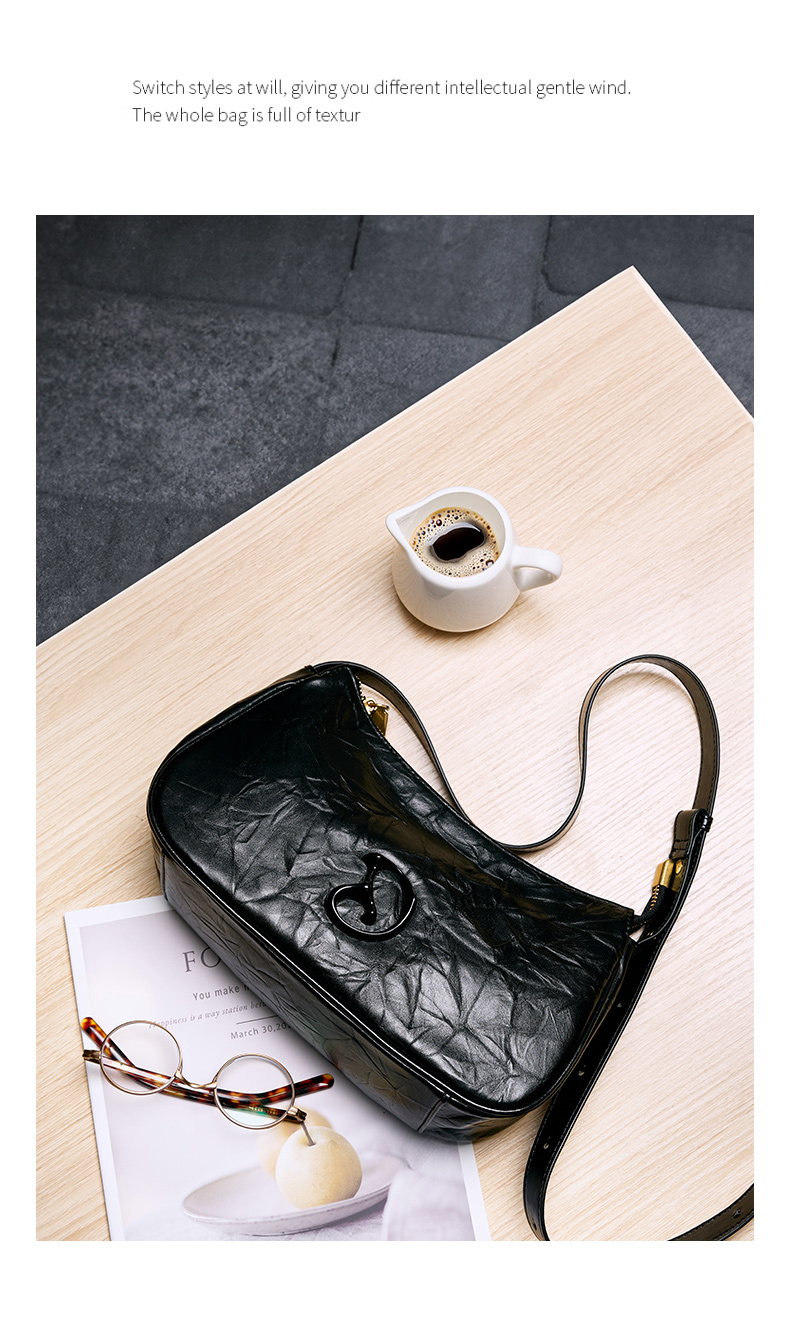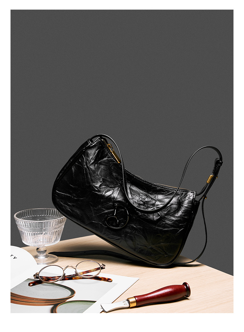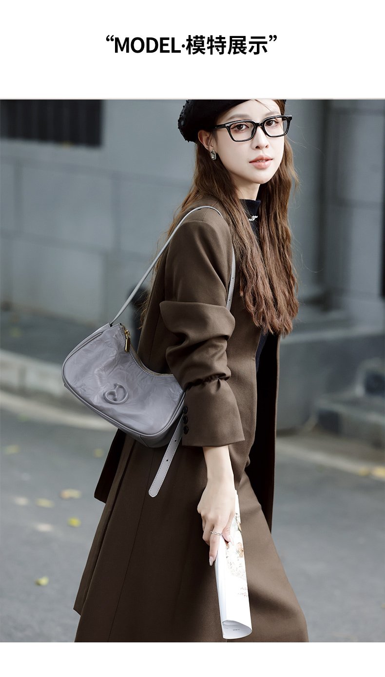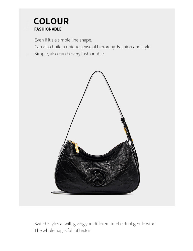 2508-小眾設(shè)計(jì)包包女2023新款秋冬黑色法棍腋下包高級感單肩斜挎包