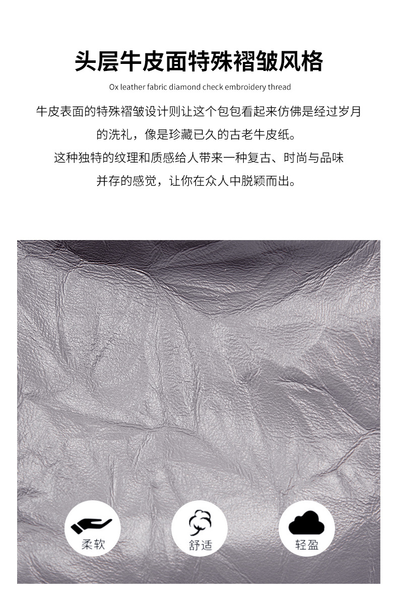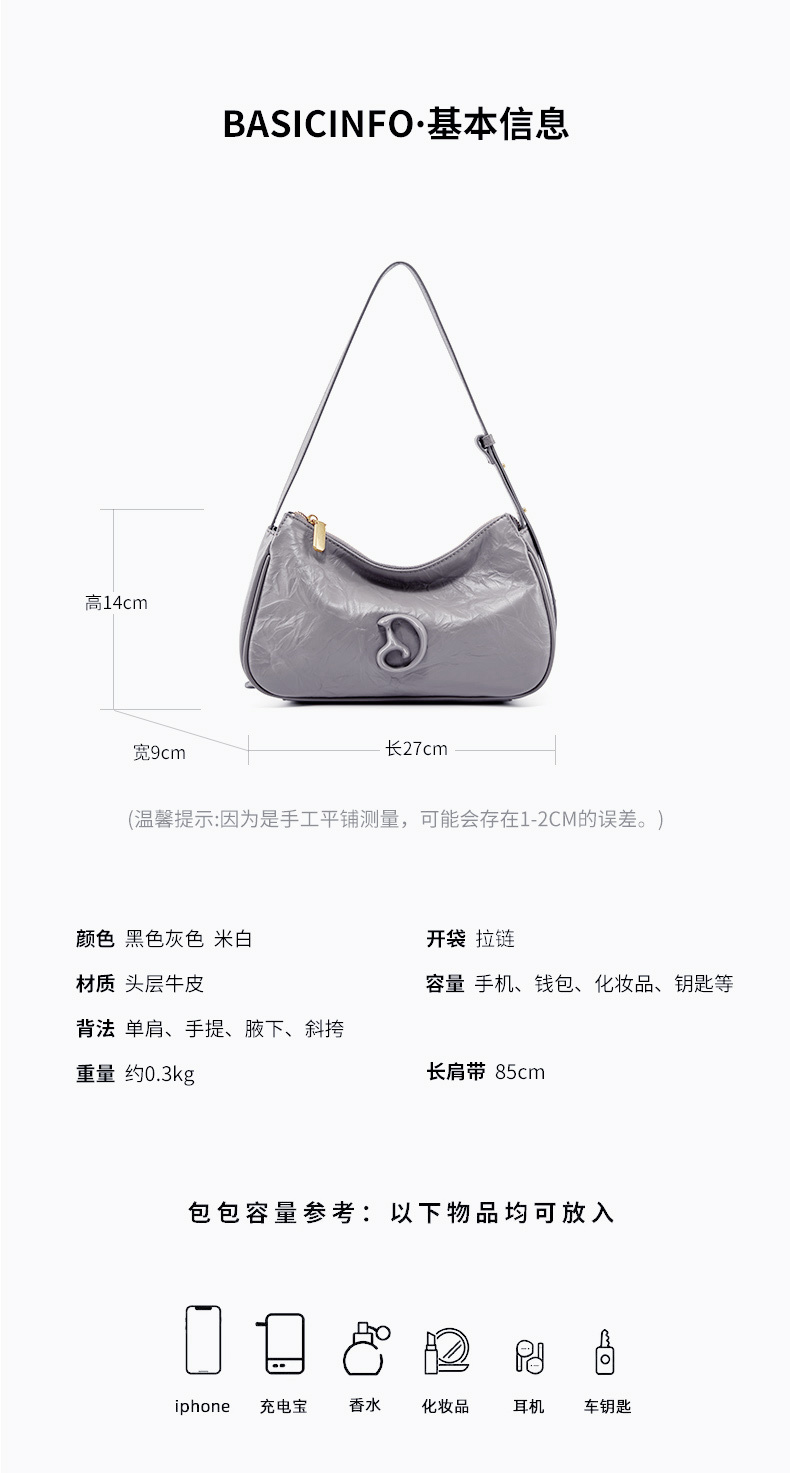 貨號:2508 顏色:黑色、米白、灰色 材質(zhì):頭層牛皮 尺寸:27*9*14