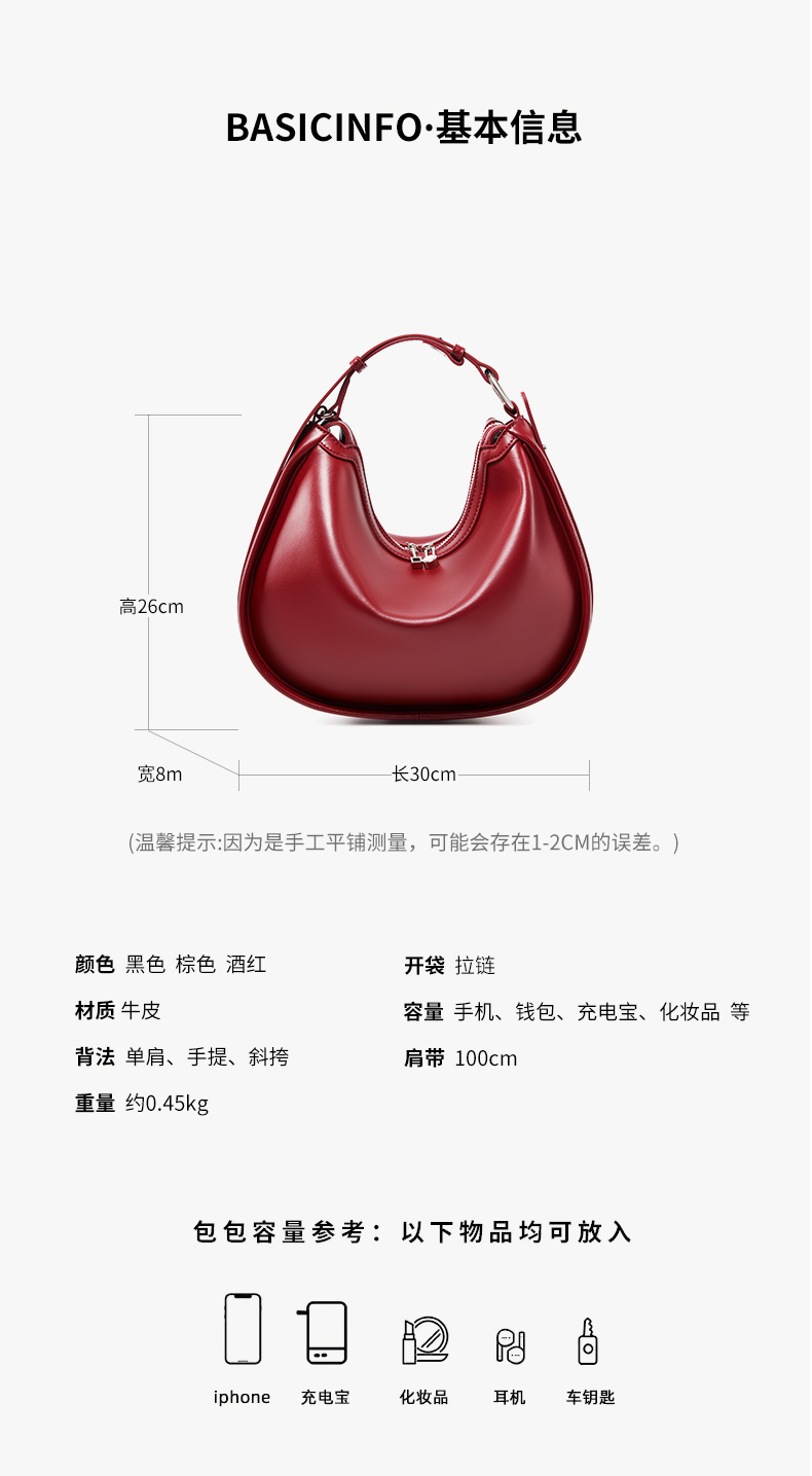 - 商品名稱: 2562-小眾設(shè)計月牙包真皮腋下包女2024新款簡約高級單肩斜挎百搭女包包