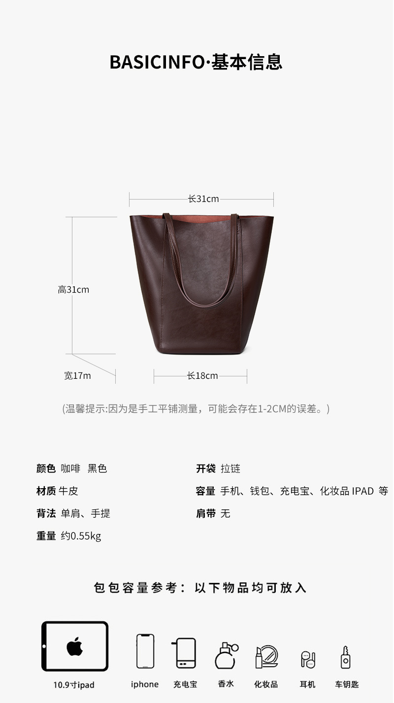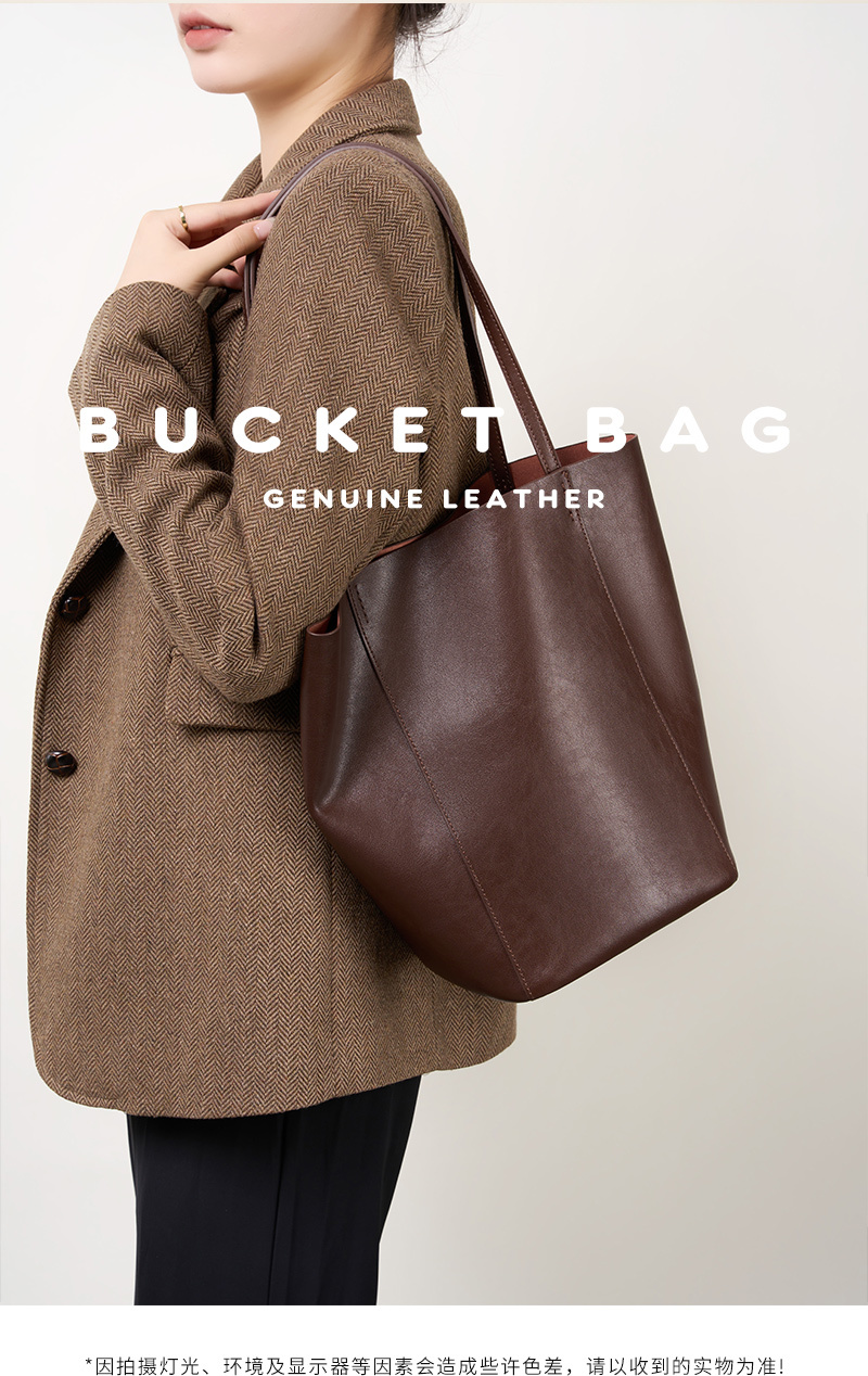 - 商品名稱: 2565-小眾牛皮通勤托特包女真皮大容量水桶包2023新款高級感單肩手提包