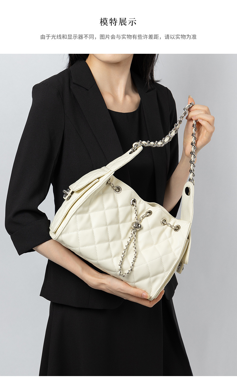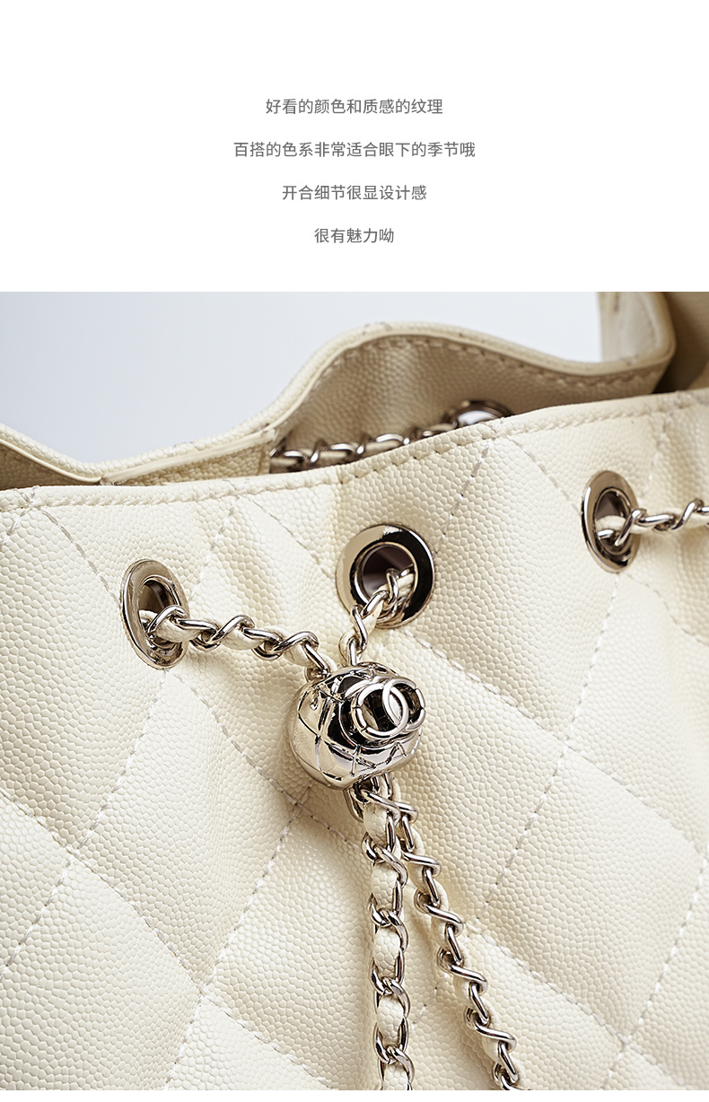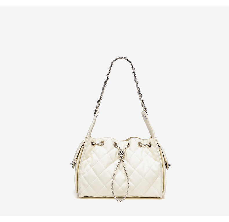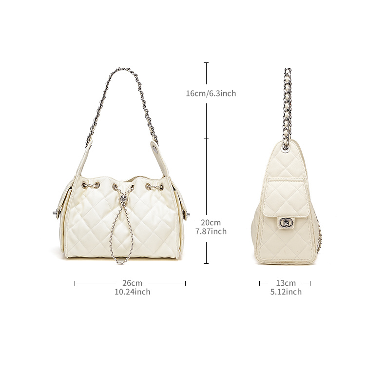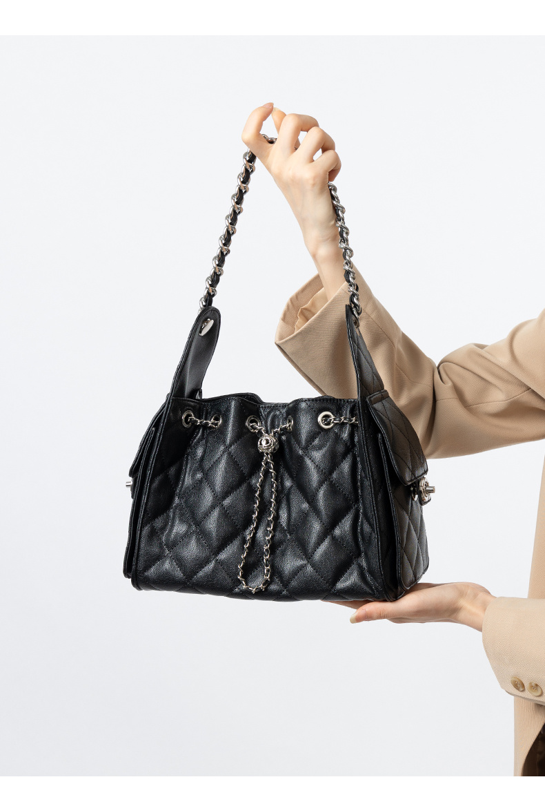 - 商品名稱: 3173-真皮菱格腋下鏈條包百搭大容量魚子醬紋單肩水桶包抽繩包