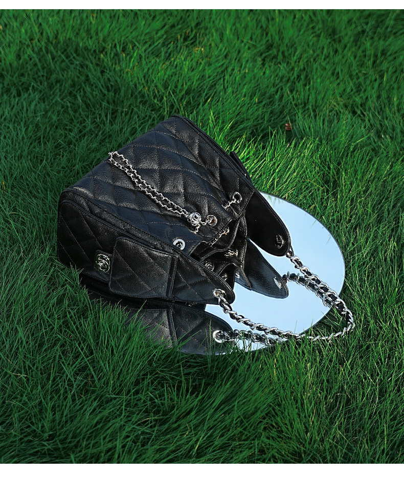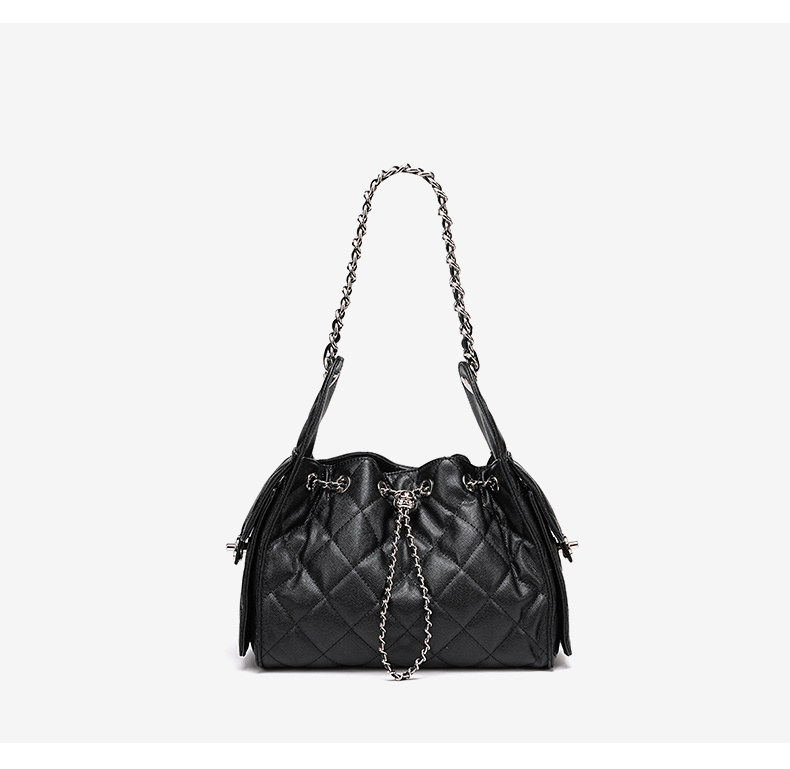 3173-真皮菱格腋下鏈條包百搭大容量魚子醬紋單肩水桶包抽繩包