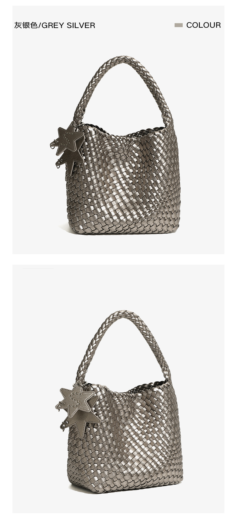 貨號(hào):3177 顏色:銀灰色、清水藍(lán)、淺金色 材質(zhì):牛皮 尺寸:19*14*19