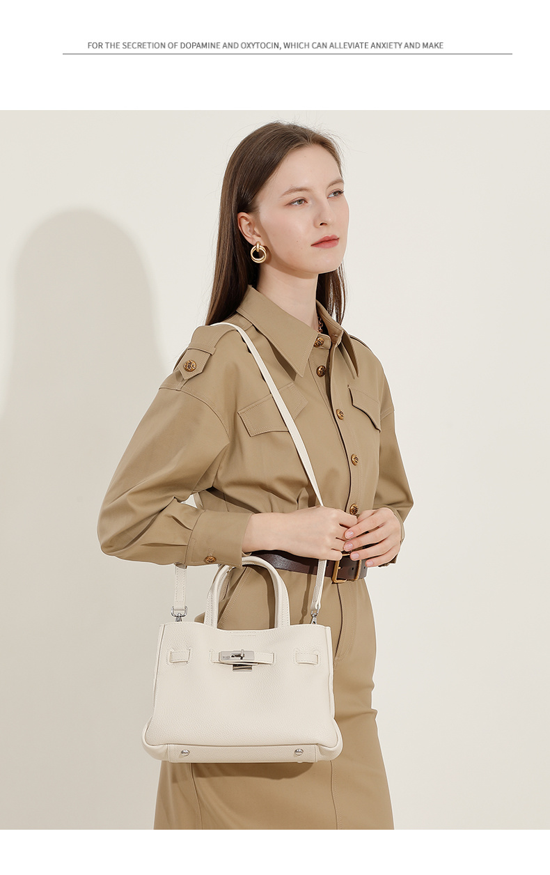 3081-頭層牛皮手提包新款保齡球包包簡約休閑單肩斜挎包