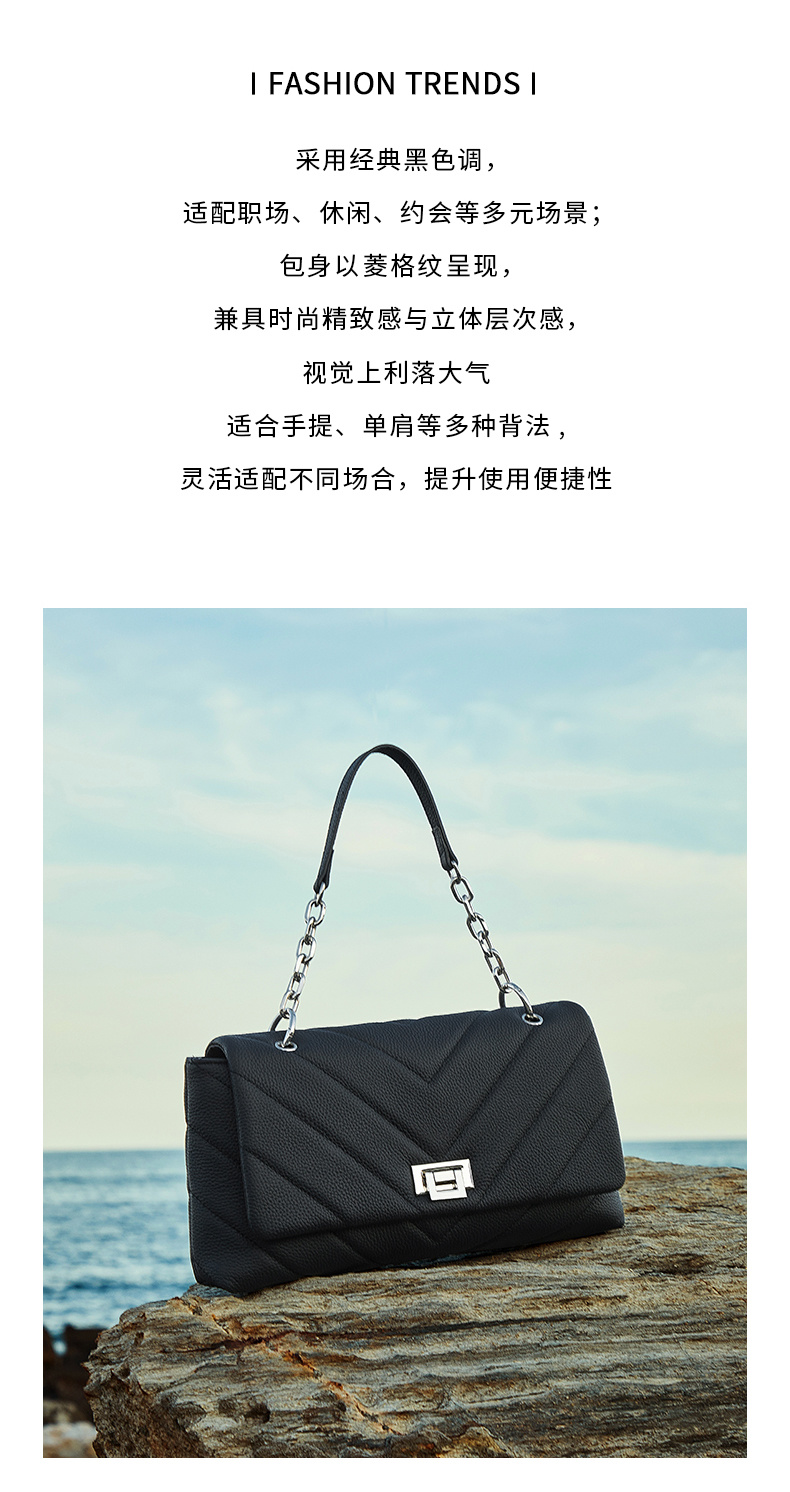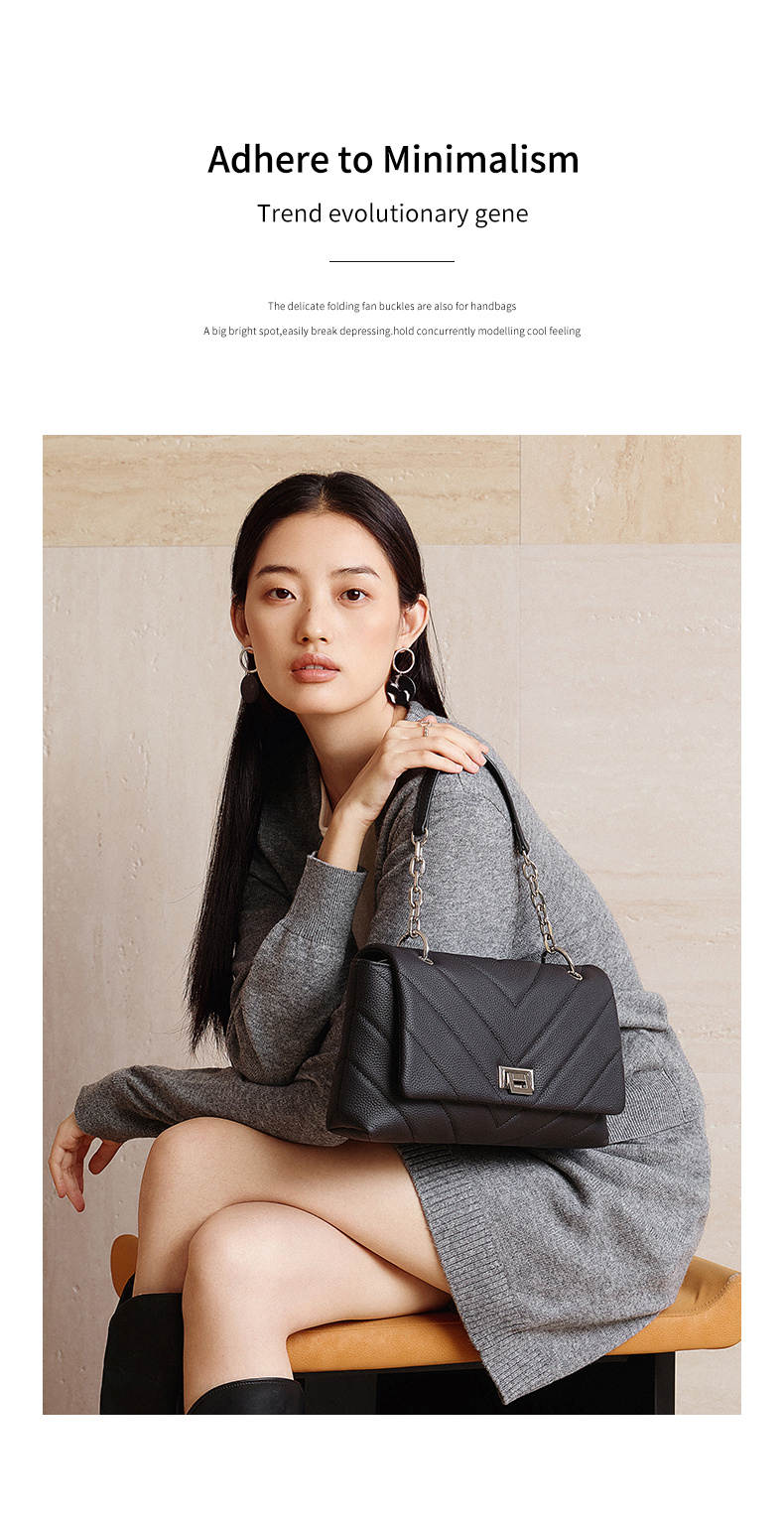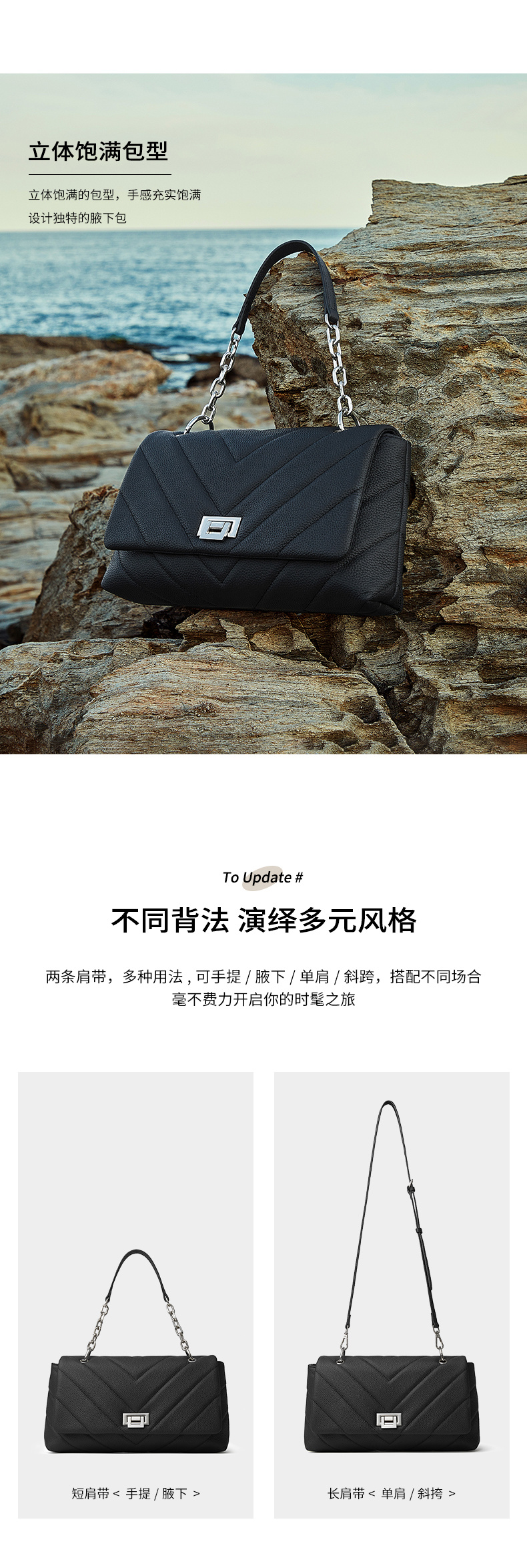 3166-大容量真皮女包秋冬新款時尚百搭鏈條腋下包
