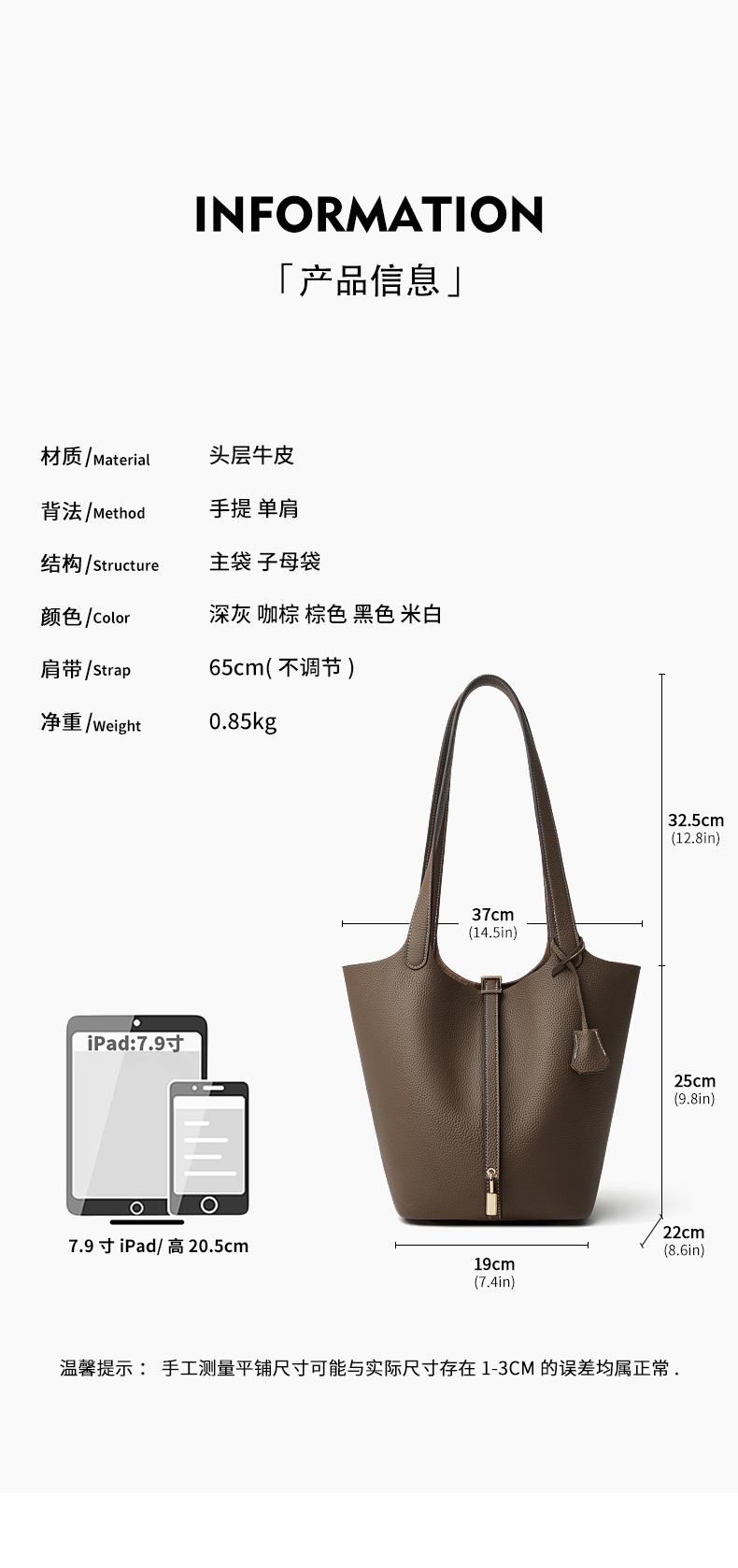3205-頭層植鞣真皮托特包大容量質(zhì)感通勤大包