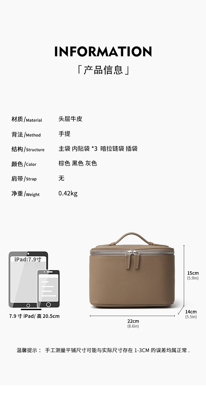 3189-頭層軟牛皮化妝包精致百搭旅行便攜洗漱包收納包